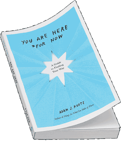 An animated sticker of the book "You Are Here For Now" by Adam J. Kurtz, a guide for finding your way, promoting self-care.