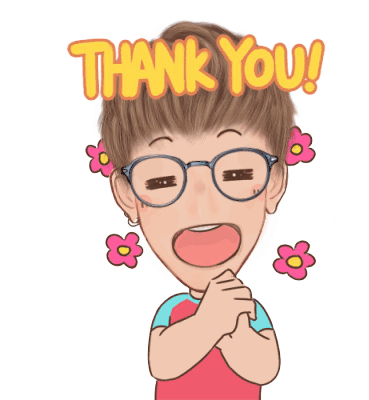 Animated sticker featuring Yamyam Gucong and William Gucong expressing gratitude with a cheerful 'THANK YOU!' message.