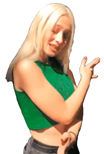 Yaren Alaca dances playfully, looking over her shoulder in a vibrant green crop top and jeans, exuding confidence.