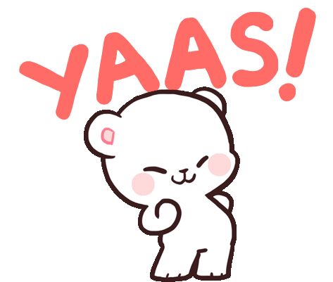 Milk bear from Milk and Mocha expresses enthusiastic agreement or excitement with 'YAAS!' text.