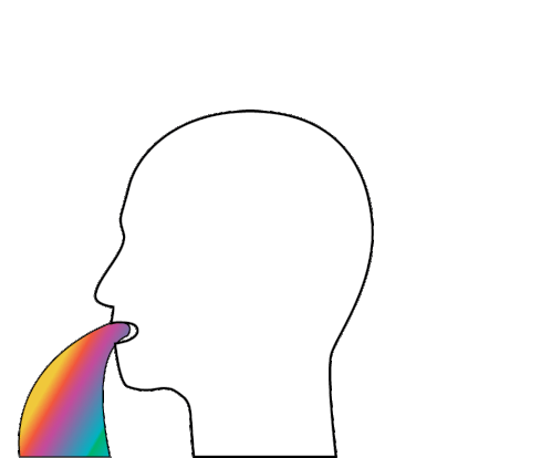 Yash Pradhan's surreal sticker featuring a person's head spewing a vibrant rainbow, symbolizing pride and expression.