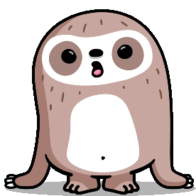 A cute cartoon sloth with half-closed eyes yawns, looking very sleepy and tired.