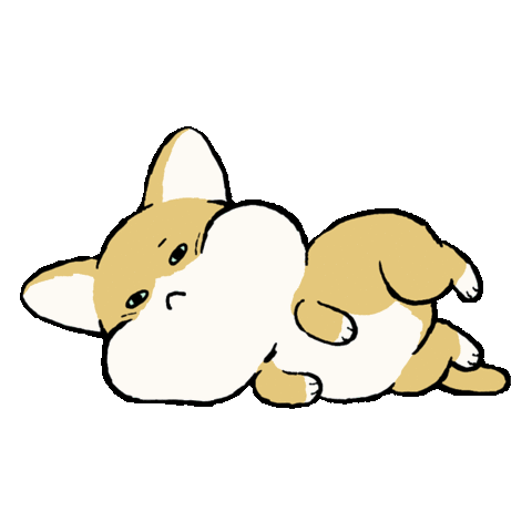 A cute cartoon corgi dog lies down, looking bored and sleepy, letting out a big yawn.
