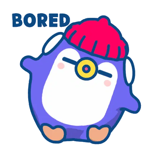 A cute, blob-like character yawns and looks bored while holding onto a green stick, appearing tired or uninterested.