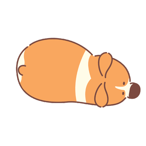 A cute animated corgi dog lies down, looking bored and then lets out a big, unwilling yawn.