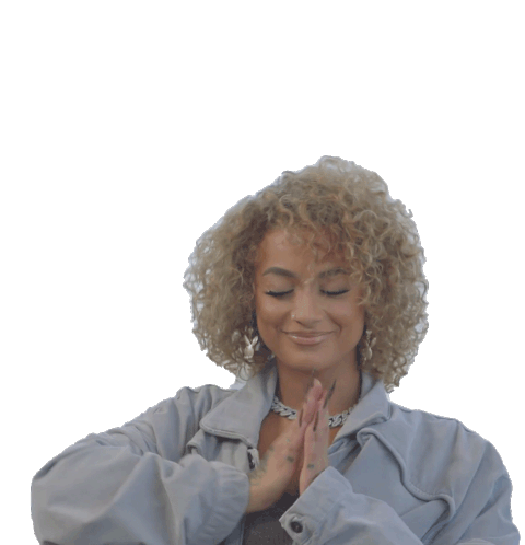 Danileigh claps her hands together with a joyful smile, expressing cheer and excitement. Her curly hair and nose ring are visible.