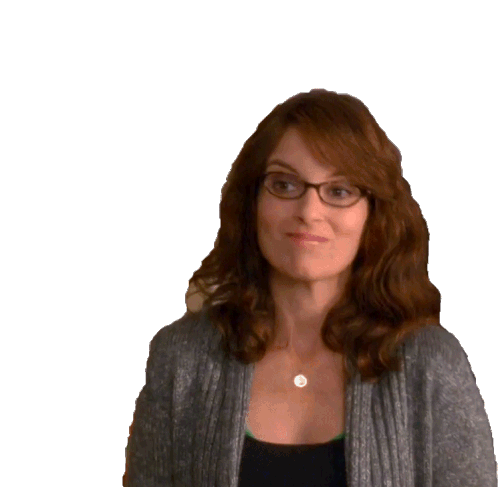 Tina Fey as Liz Lemon expresses excitement and happiness with a big smile and laugh, perfect for 'Yay!' moments.