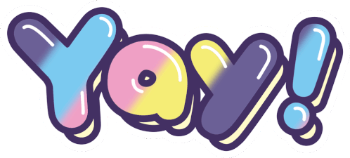 A vibrant, bubbly sticker featuring the word 'YAY!' in colorful, gradient letters, perfect for expressing excitement.