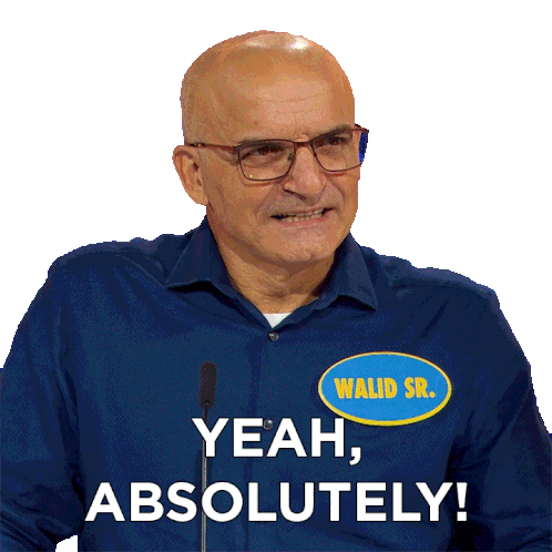 Walid Sr. from Family Feud emphatically agrees, saying "Yeah, Absolutely!" with a confident and affirming expression.