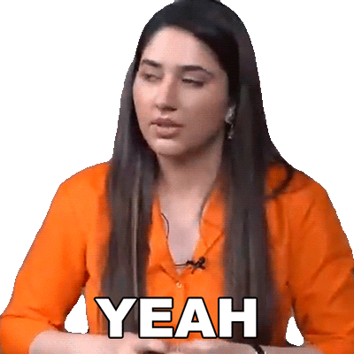 Disha Parmar, wearing an orange shirt, confidently says 'Yeah' with a nod, expressing agreement or affirmation.