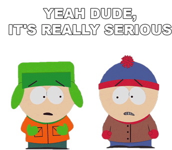 Kyle Broflovski and Stan Marsh from South Park look concerned under the caption 'Yeah Dude, It's Really Serious'.