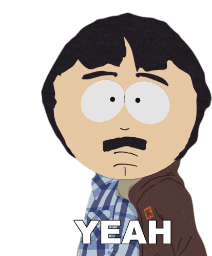 Randy Marsh from South Park enthusiastically says 'YEAH' in this animated sticker.