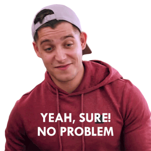 Tristan, also known as Oliver Andrews, smiles and nods in a red hoodie, saying 'Yeah, Sure! No Problem' with a casual attitude.