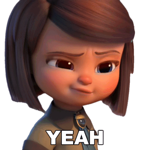 Tabitha Templeton from The Boss Baby Family Business enthusiastically says 'Yeah' with a big smile, showing agreement.