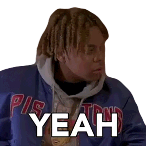 Ybn Cordae, a man with dreadlocks, reacts with a clear 'Yeah' while wearing a blue and grey jacket.