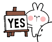 A cute Acetil cartoon rabbit holds up a sign clearly displaying the word 'YES'. Perfect for agreement.
