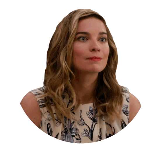 Alexis Rose from Schitt's Creek expresses a surprised 'yes' or agreement with wide eyes and an open mouth.