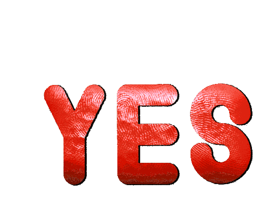 An animated sticker featuring the word 'YES' with a shifting clay-like texture and vibrant colors.