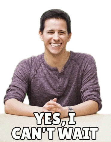 Ryan, a man in a purple shirt, smiles broadly and expresses excitement, saying "Yes, I can't wait."
