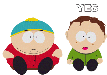 Eric Cartman from South Park angrily shouts "NO!" while another character looks sad.