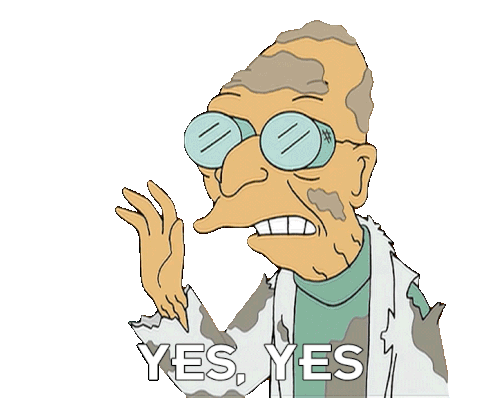 Professor Farnsworth from Futurama nods and says 'Yes, Yes', expressing agreement or dismissive acknowledgment.