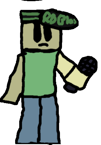 A blocky, Roblox-style character, possibly Yg, wearing a green cap with "RDG" and holding a microphone.