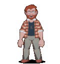 Alex Eggleston, also known as Alex Yiik, in a dynamic pixel art pose from the game Yiik A Post Modern Rpg.