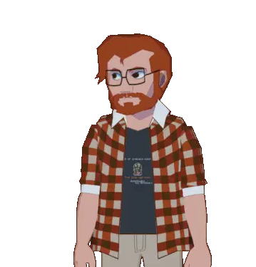 An animated sticker featuring Alex Eggleston, also known as Alex Yiik, from the unique game YIIK: A Postmodern RPG.