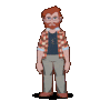 A pixel art character, Yiik, performs the iconic Gangnam Style dance with energetic moves and a plaid shirt.
