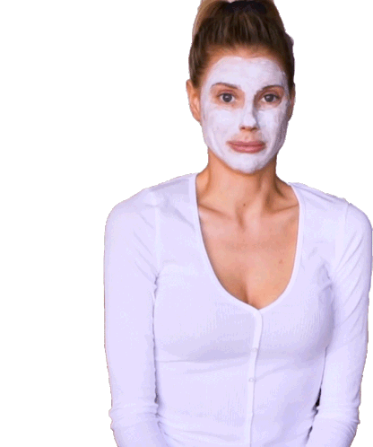 A woman with a white face mask on makes a 'yikes' expression, scrunching her face to the side.