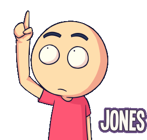 Yimyam Jones, the bald cartoon character, looks up thoughtfully while pointing his finger upwards.