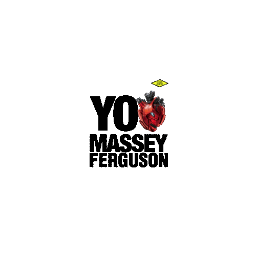 An animated logo sticker featuring 'YO MASSEY FERGUSON' text with a stylized red heart, representing love for the brand.
