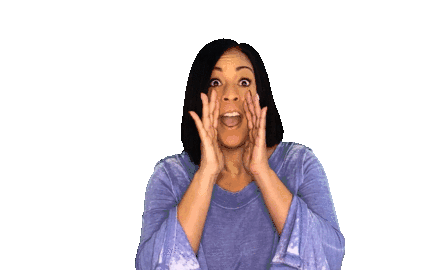 Holly Logan enthusiastically shouts and calls out, cupping her hand to her mouth, looking surprised and excited.