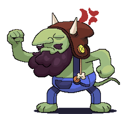 Yonsoncb's angry pixel art troll, with horns and a beard, shaking its fist in a fit of rage.