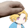 Yoosung gently pets a happy dog, showing affection and care in this sweet animated sticker.