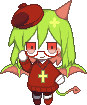 A pixel art blue creature with a long trunk and square eyes, representing Yosafire from The Gray Garden.