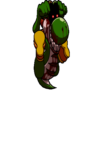 Yoshi Exe's menacing green sphere with rotating spikes performs a powerful ground pound animation.