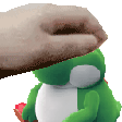 A cute animated sticker of Yoshi, the green dinosaur, happily reacting to being petted.