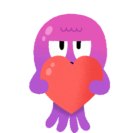 A sad purple blob-like creature, resembling an octopus, holds a large red heart, expressing heartbreak and upset feelings.