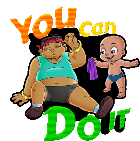 A cartoon sticker featuring Kalia and Raju from Chhota Bheem, with the encouraging text 'You can Do it'.