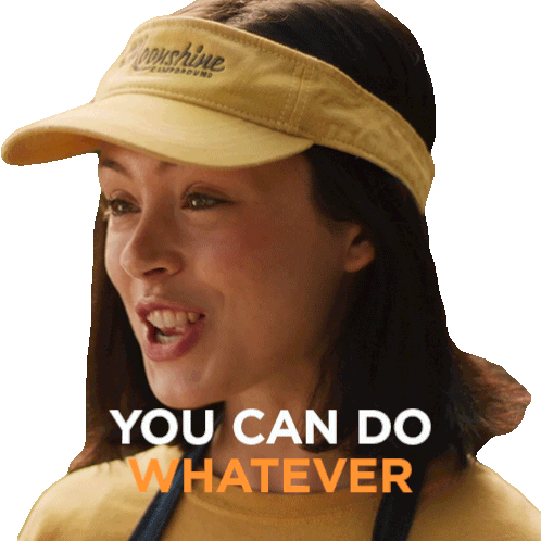 Eleanor Bennett, wearing a yellow Moonshine visor, smiles and says 'You can do whatever you want.'