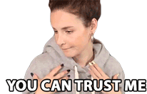 Simply Nailogical, Cristine Raquel Rotenberg, confidently gestures to herself with the text 'YOU CAN TRUST ME', conveying reliability.