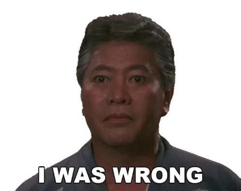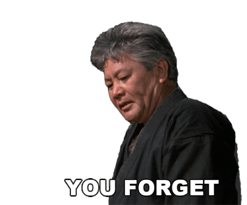 Sato, portrayed by Danny Kamekona, delivers the iconic line 'You Forget' with a stern expression.