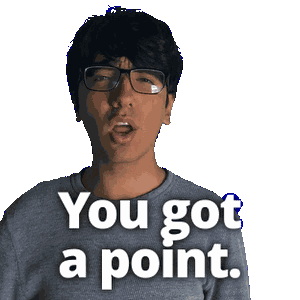 a man wearing glasses and a gray shirt says you got a point