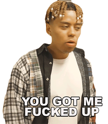 Ybn Cordae, wearing a plaid shirt, looks surprised and says "You got me fucked up" on a white background.