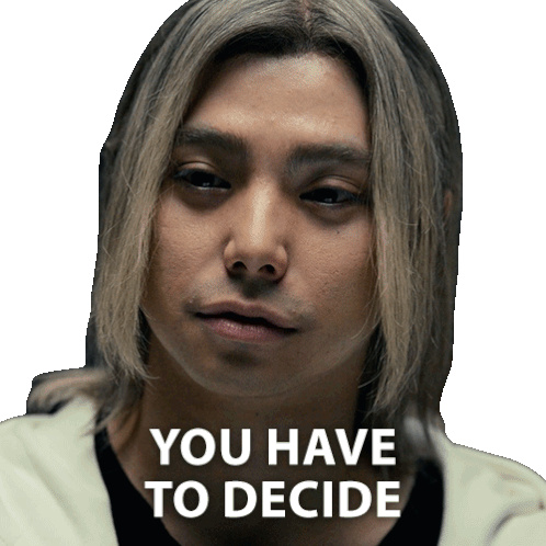 Shuntaro Chishiya from Alice in Borderland with the text 'You Have To Decide' displayed on screen.