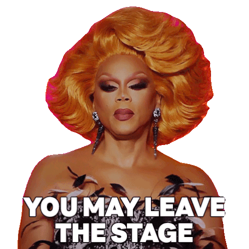 RuPaul Andre Charles delivers the iconic line 'You May Leave The Stage' with a direct gaze, perfect for dramatic exits.