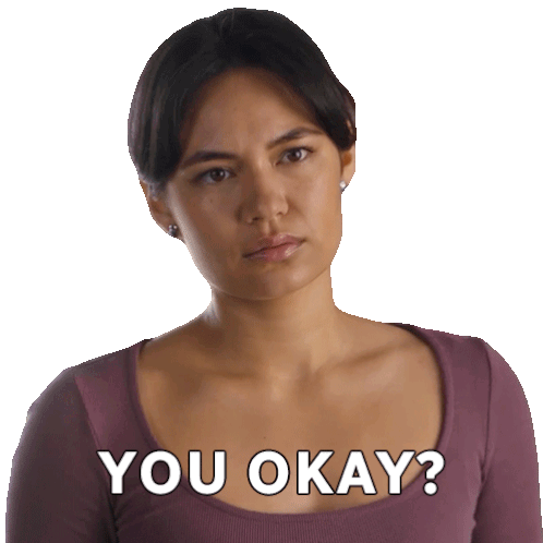 Crystal from Skymed, played by Morgan Holmstrom, asks 'You Okay?' with a concerned expression while wearing a purple top.