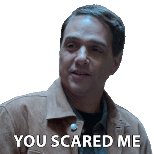 Daniel LaRusso, played by Ralph Macchio, reacts with a startled expression, saying "You Scared Me" in this Cobra Kai sticker.