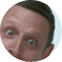 Tim Robinson from I Think You Should Leave gives a skeptical, questioning look in a circular, pixelated close-up.